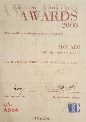 was an awarded winner in 2006 - NHBRC - ABSA - Eric Molobi Innovation Hub -
